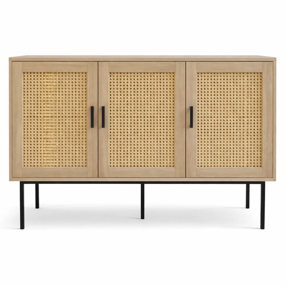 Buffet 2 Portes Effet Chêne avec 6 Compartiments de Rangement