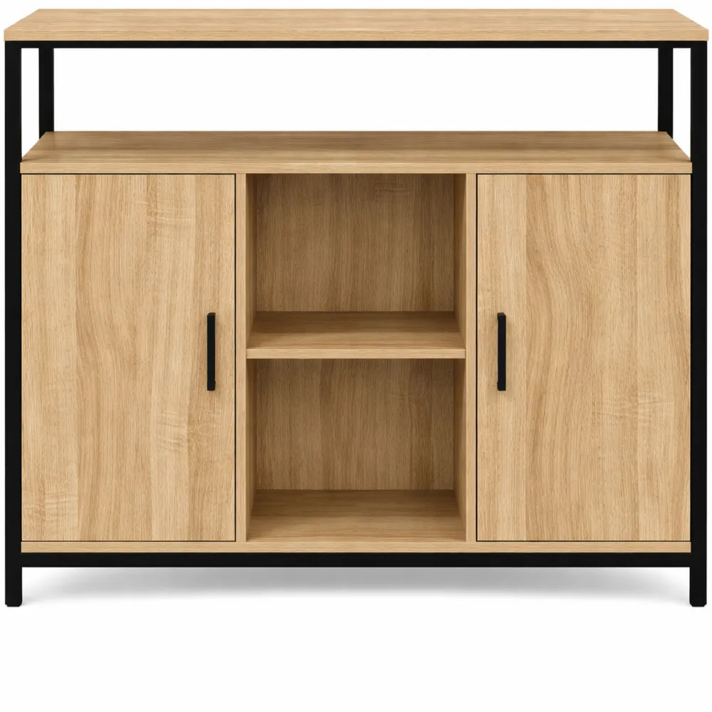 Buffet 100 cm 2 Portes avec Étagères Style Industriel
