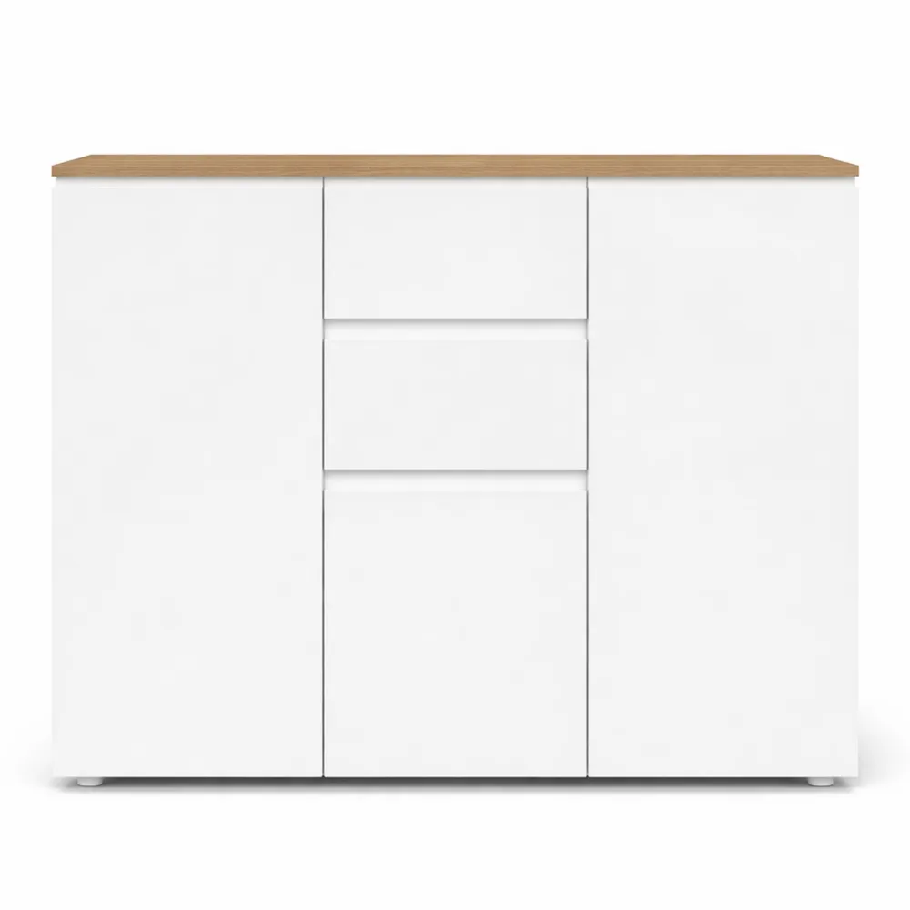 Buffet Moderne 100 cm avec 3 Portes et 2 Tiroirs en Blanc