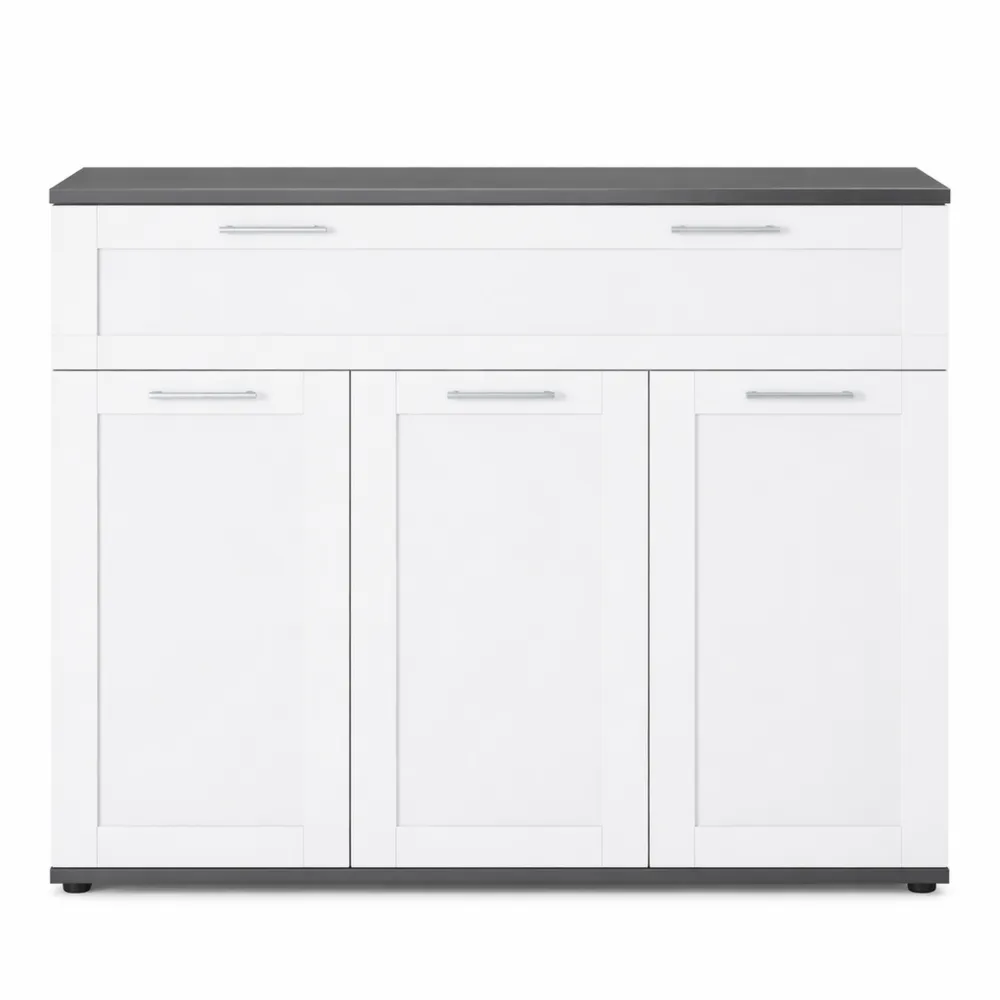 Buffet Moderne 3 Portes et 1 Tiroir Blanc avec Plateau Gris