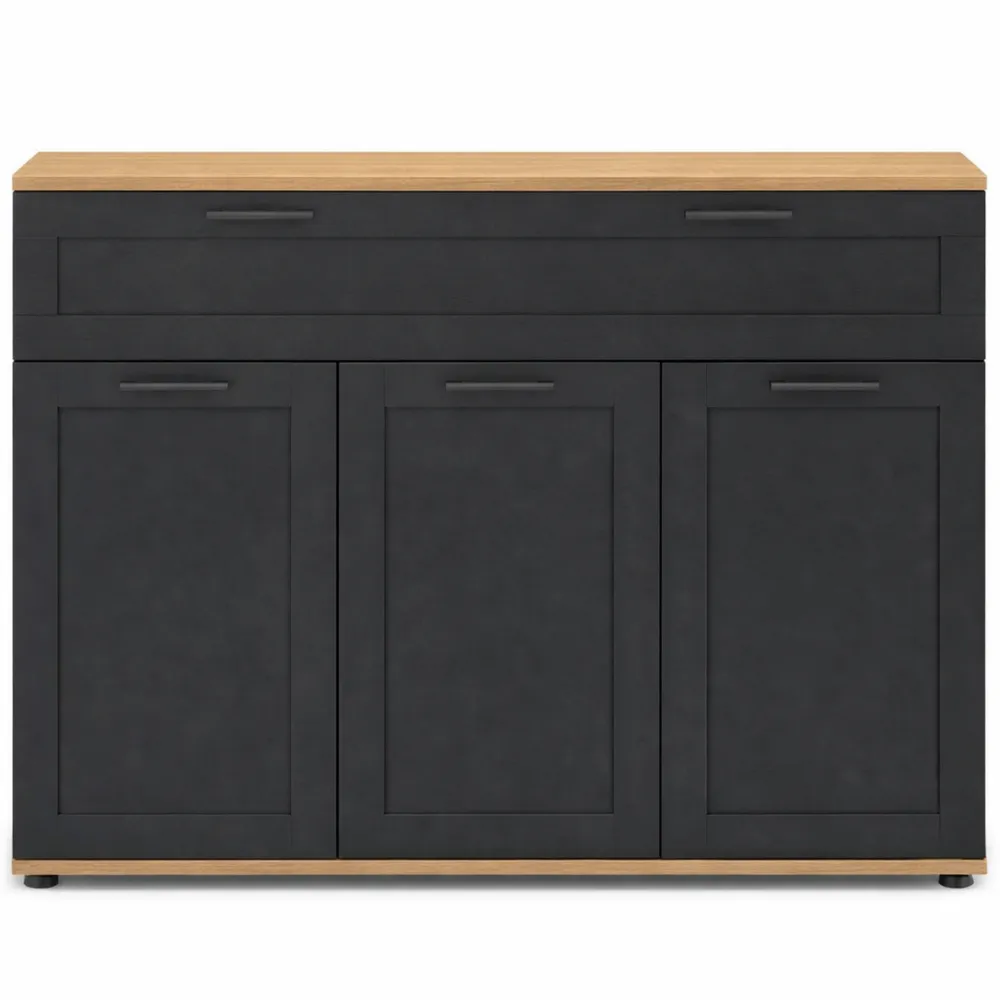 Buffet Noir 3 Portes et 1 Tiroir avec Plateau Bois 100 cm