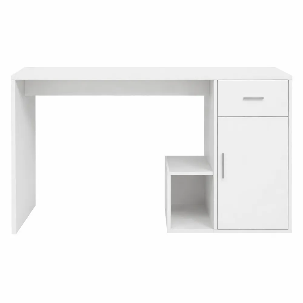Ce bureau d'angle offre un design simple et épuré pour un espace de travail efficace. Construit en bois d'ingénierie, il présente des étagères et des portes pour un rangement bien organisé. Ce meuble s'intègre facilement dans différents environnements, qu'il s'agisse de bureaux ou de salons, et convient pour les étudiants ou les professionnels. Avec des dimensions compactes de 102 x 50 x 75 cm et un entretien facile nécessitant un simple coup de chiffon humide, ce bureau est adapté aux petits espaces et à un usage quotidien.