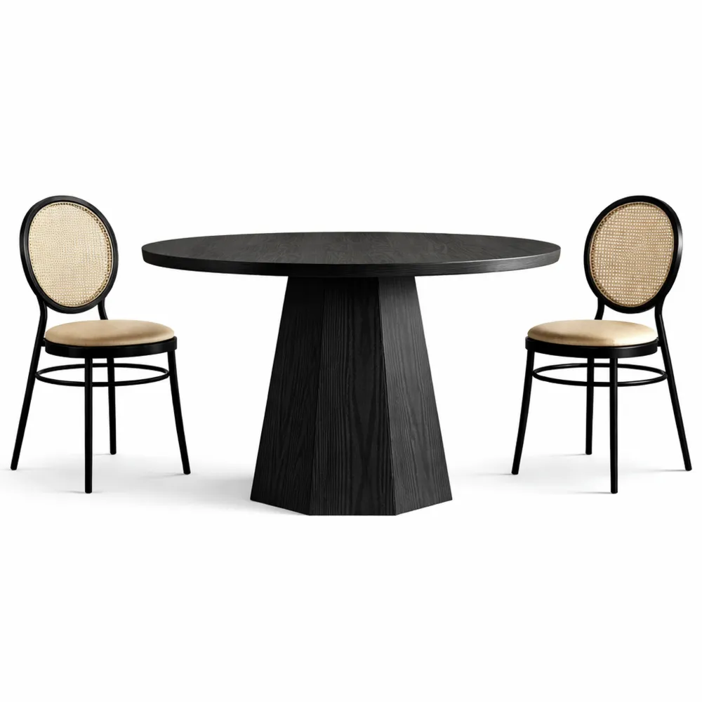 Table ronde noire 118 cm, design moderne pour salle à manger et salon